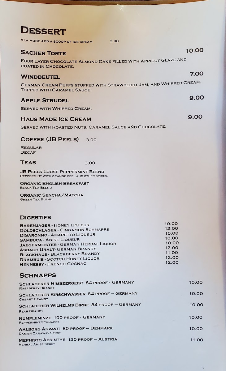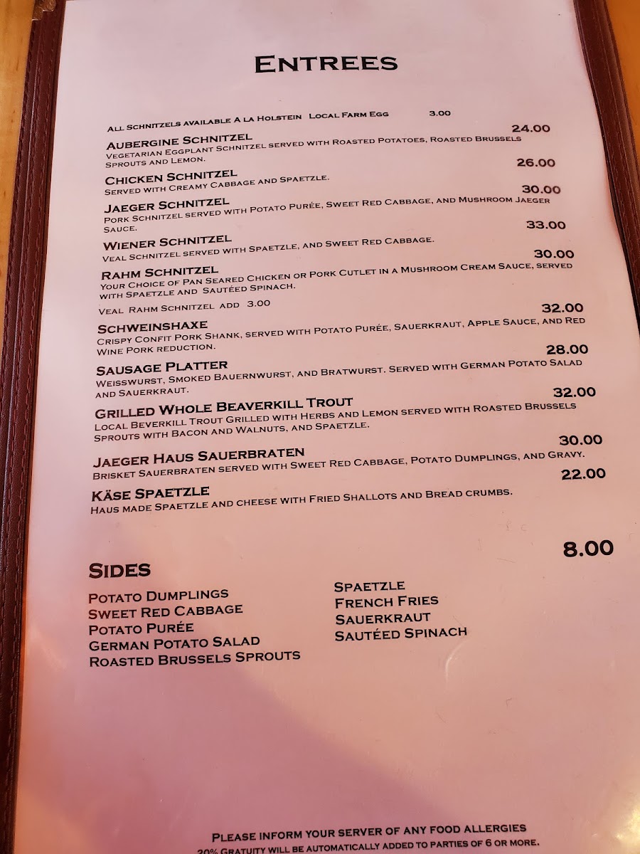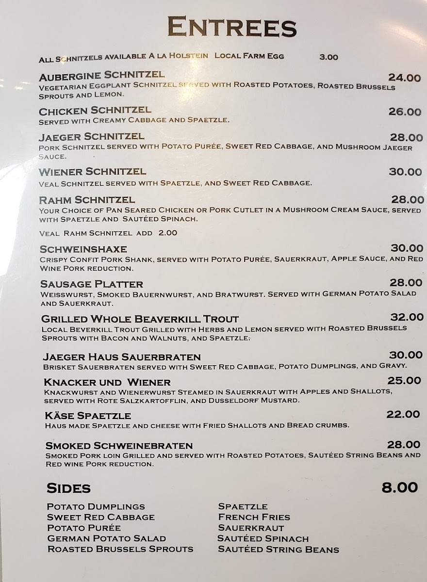 Jaeger Haus Menu